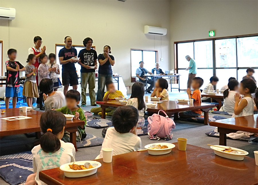 「いただきます」の挨拶は外国の方々と子ども達で仲良く行い、上手にできました。