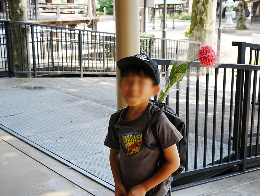 子ども達は帰りにお土産として「ダリアの花」をいただきました。 (雲類鷲)