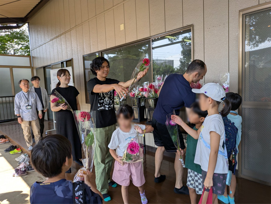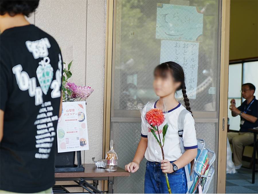 山梨バスツアーの紹介があり、「ダリアの栽培」のはなしがありました。栽培したダリアを子ども達へプレゼントされました。