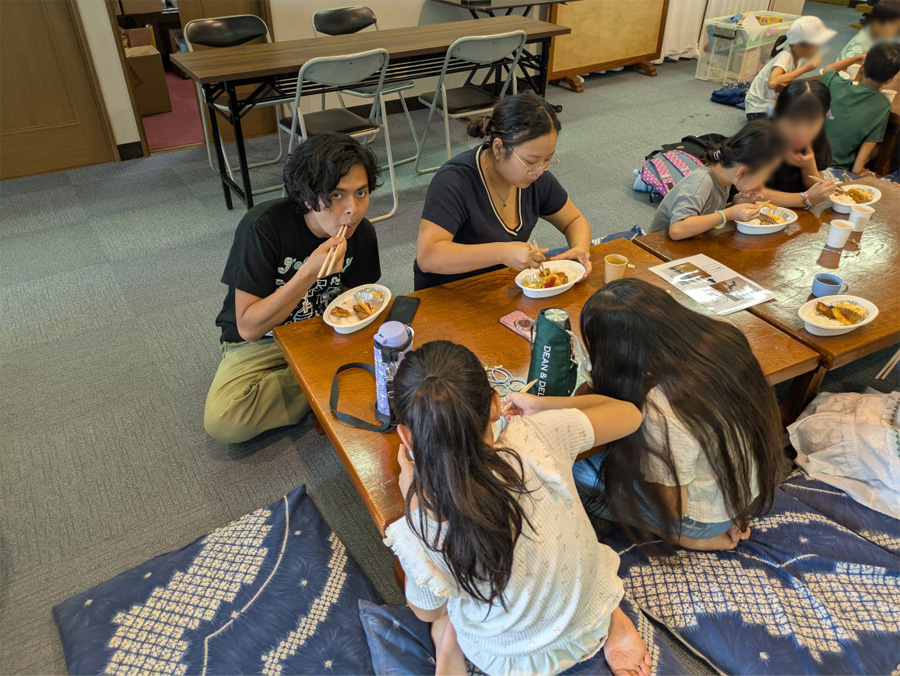 外国の方々、杉並区文化交流課の方々が子ども達の中に入り料理を楽しみました。