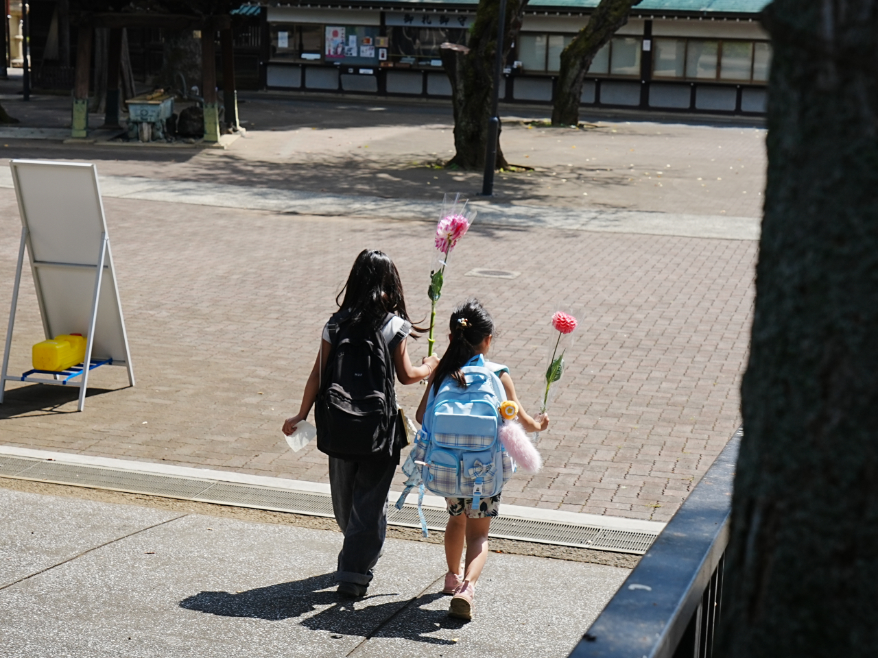 子ども達は帰りにお土産として「ダリアの花」をいただきました。 (雲類鷲)
