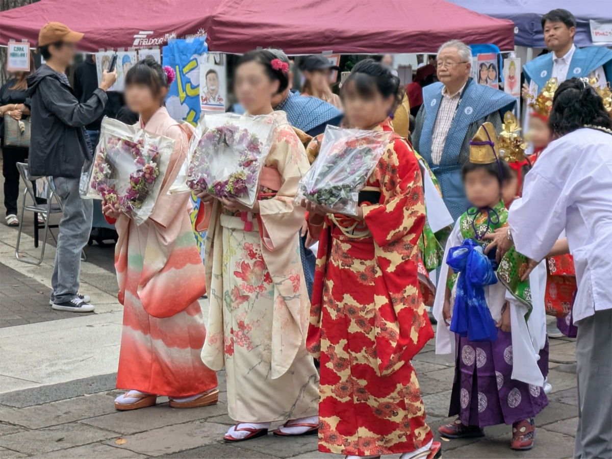 堀之内妙法寺の境内で「千日紅市」としてステージ・イベント/ワークショップ/子ども広場/親子で学ぶ初期消防体験/模擬店/千姫様とお稚児様奉納行列/千日紅プレゼントの催しが行われました。