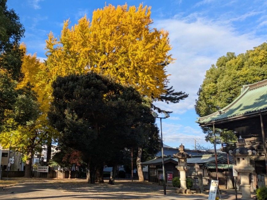 11月29日(土)、妙法寺の山門近くで朝日に映えた銀杏の紅葉に見とれていると妙法寺のお坊様から「おはよう。黄葉した銀杏が子ども達を迎えていますね」との挨拶をいただきました。