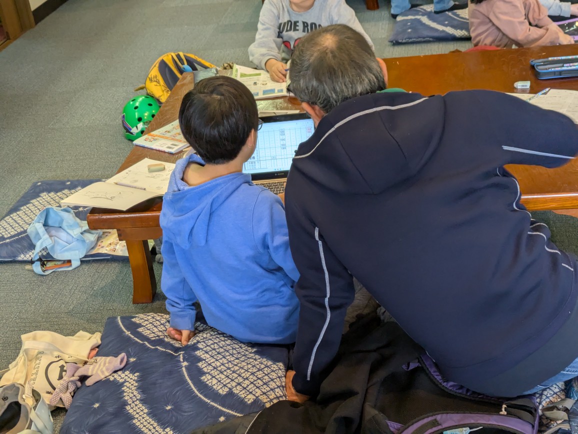共催しているNPO様が杉並区から補助をいただいており、今日は杉並区の関係の方々が寺子屋を見学に。寺子屋について説明し意見交換をし、昼食で区の方々が子ども達の中に入り食事を楽しみました。