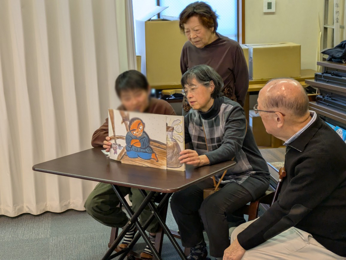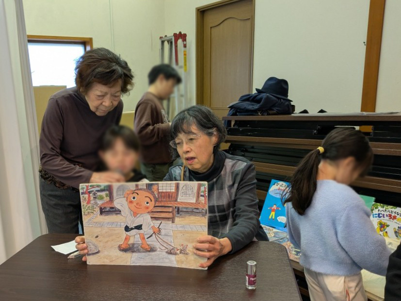 「読みたかった」と本読みの場所に近づいてきた子ども達が可愛い声で、大きな声で、真剣に、感情を込めて紙芝居を中心に読んでくれました。