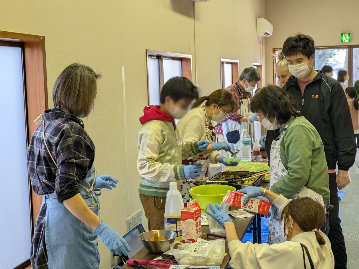 昼食はそのじゃが芋を使ったクリームシチューと小松菜&卵の炒め物、デザートは「フルーチェ」でした。美味しいじゃが芋のクリームシチュー、デザートは子ども達や見学の方々に評判でした。