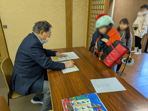 書き初めが早めに終わった子ども達は「折り紙」「シールの見せ合い/交換」をして楽しんでいました。