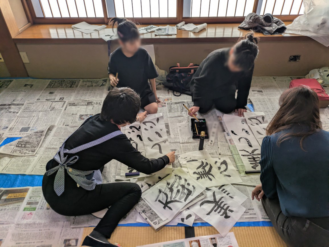 また、中学1年生のスタッフが毛筆に参加して、「友情を誓う」を書き初めとしていました。