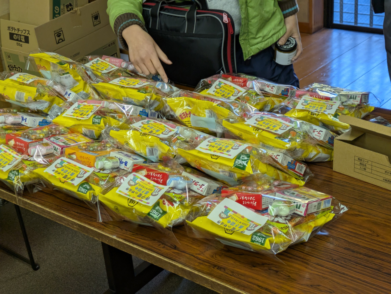 食事後、子ども達は「柚子ジャム」や「お菓子のプレゼント」を貰って大喜びでした。 (雲類鷲)