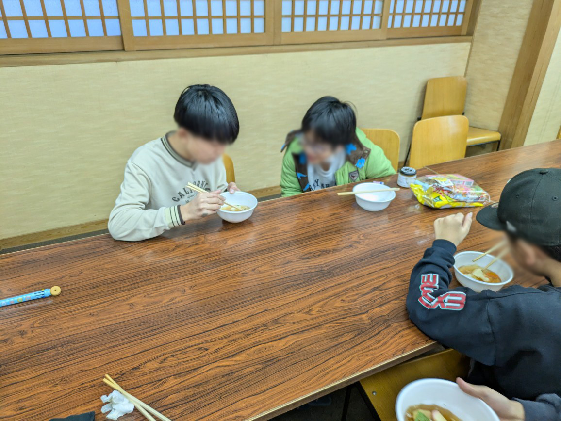 書き初めの後の食事は「お雑煮」。中には3回、4回とお代わりした子ども達もいました。