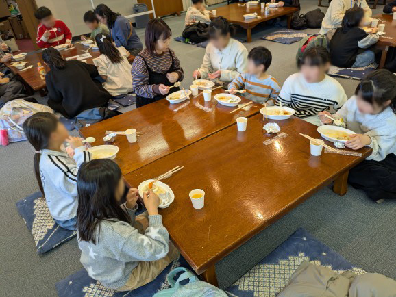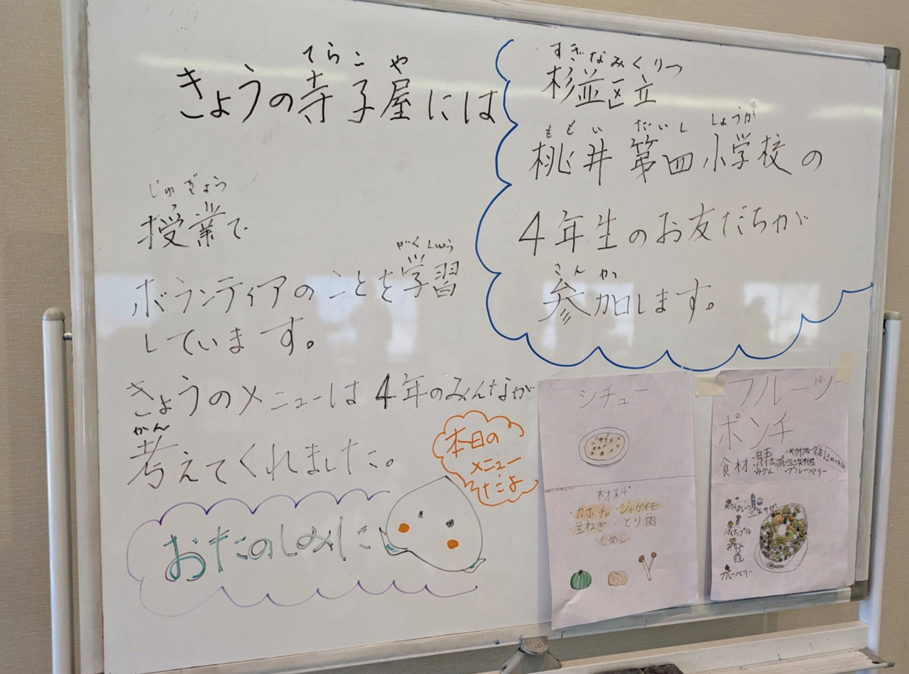 また桃四の子ども達が子ども食堂のメニュー「シチューとフルーツポンチ」を寺子屋用に持参して来てくれ、
