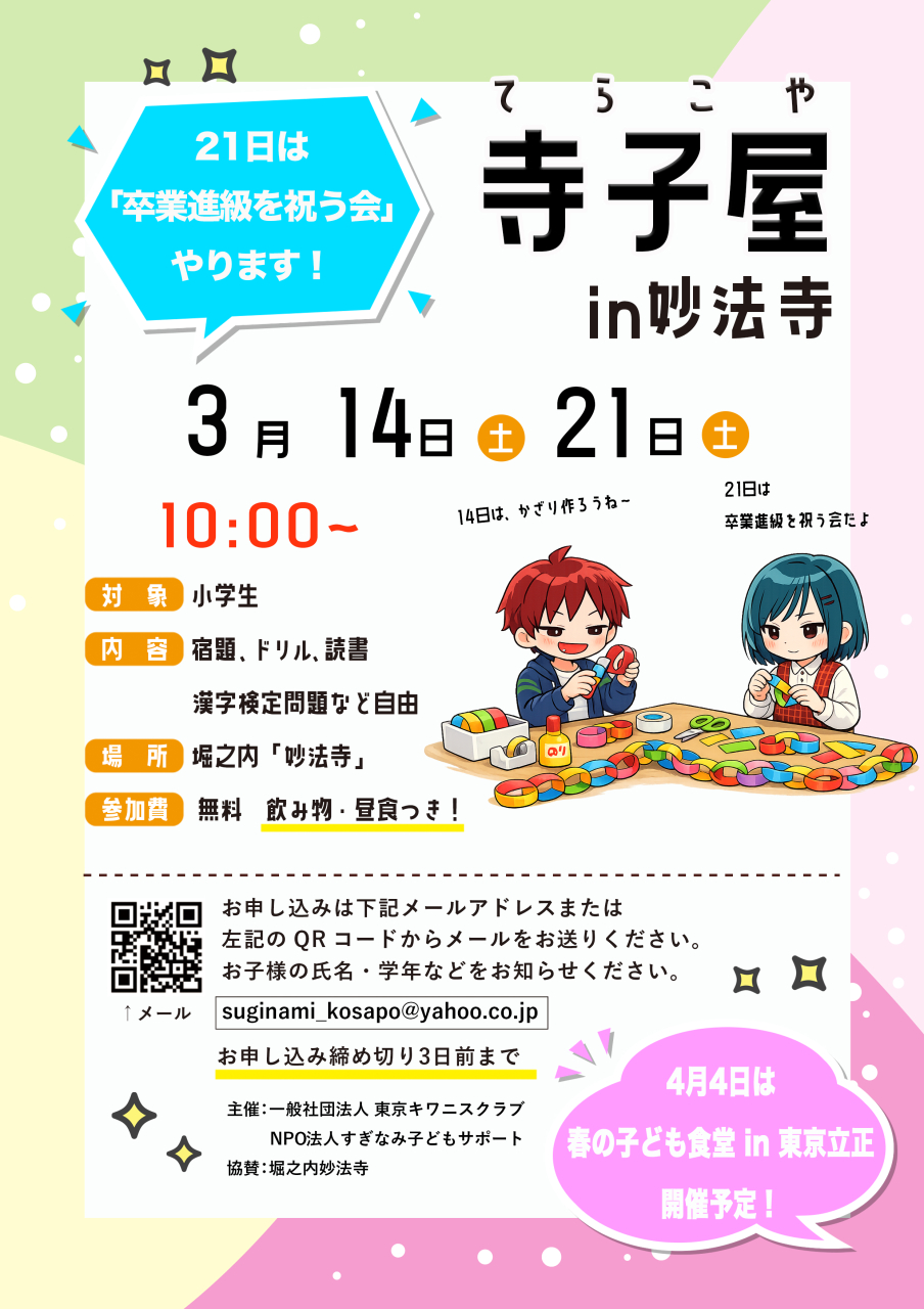 寺子屋開催のお知らせ(3月14日・21日)