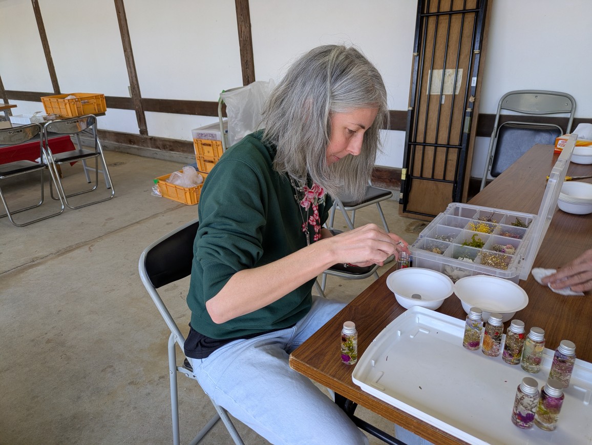 千日紅の植え付けなどを行ってくださっている繋和会の方から「ハーバリウム体験」をさせていただくことができました。いつも近隣の方々と連携出来ることは心強いです。
