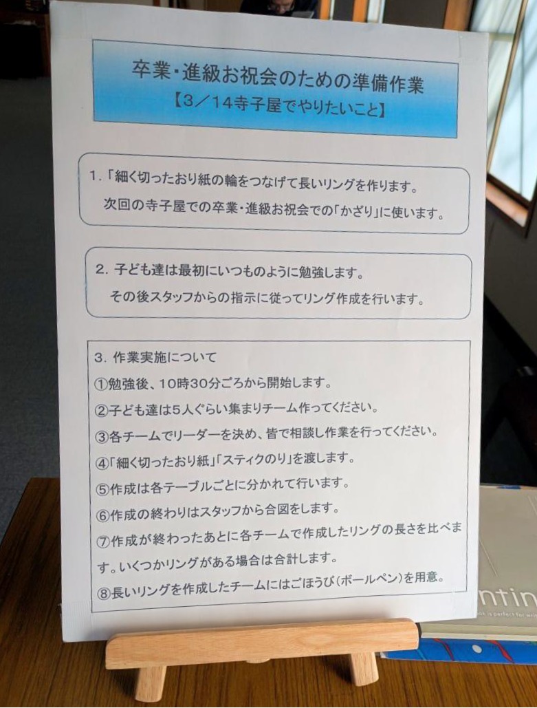 「卒業・進級お祝い会の準備の寺子屋」(193回)